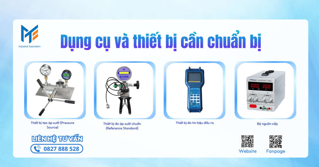 4. Nguồn cấp ổn định: Một bộ cấp nguồn 24VDC (hoặc 12VDC, 230VAC tùy loại cảm biến) để cung cấp điện cho cảm biến hoạt động trong quá trình hiệu chuẩn.