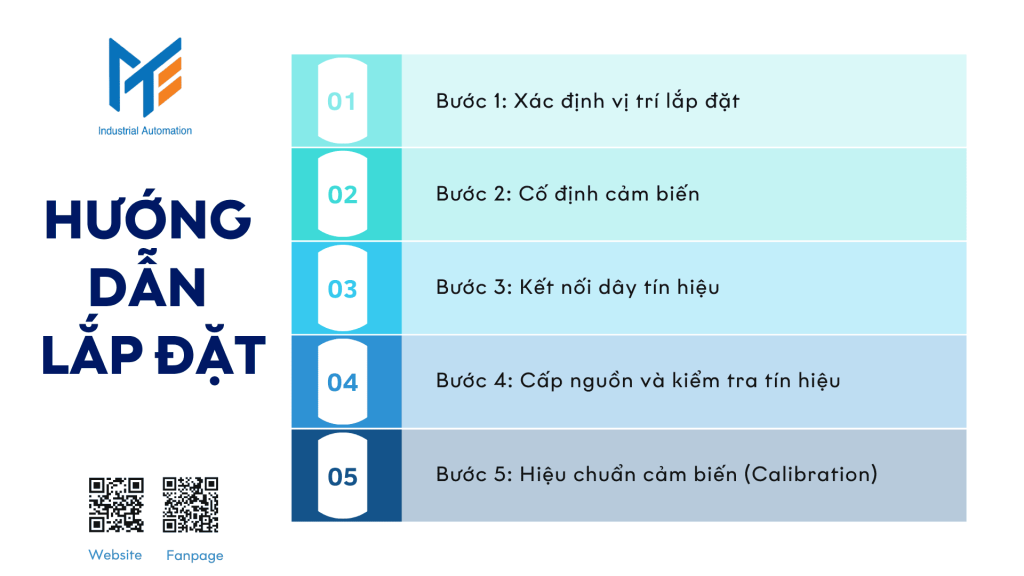 - Gắn cảm biến bằng ren hoặc phụ kiện treo chắc chắn.