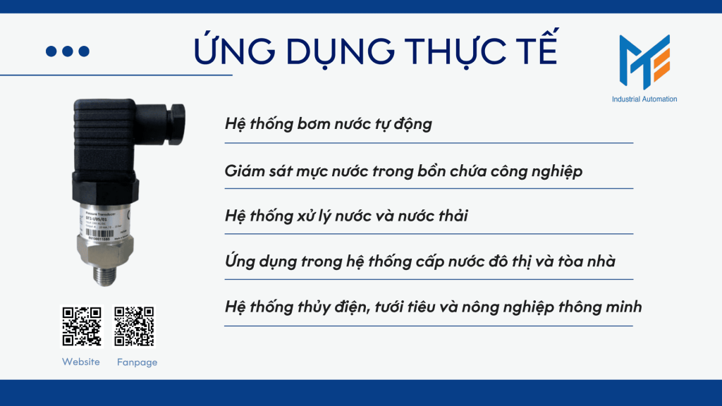 - Điều khiển bơm, van hoặc cảnh báo khi áp suất vượt ngưỡng.