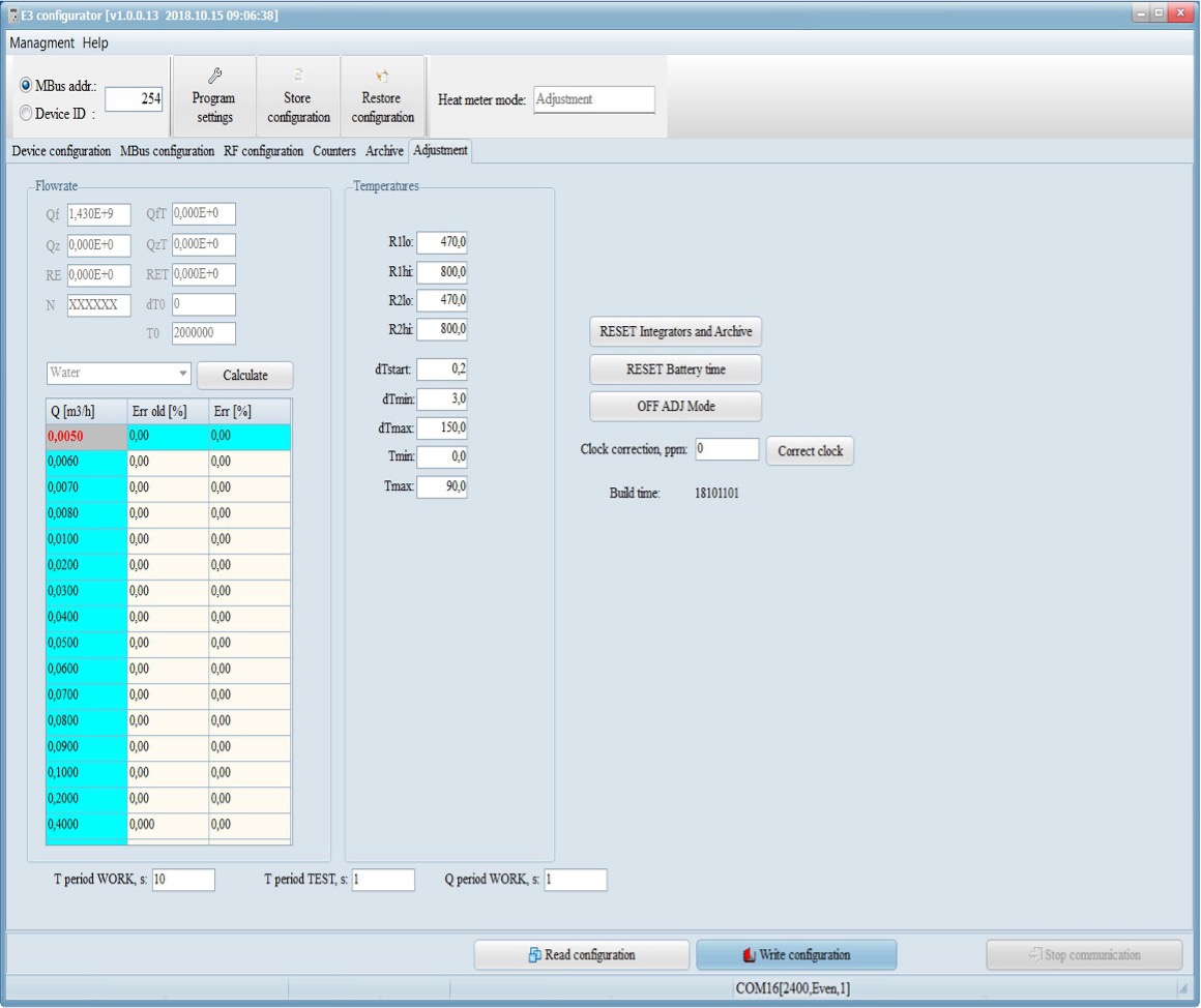 8.3. Đọc cấu hình đồng hồ (nhấn Read configuration). Đọc thông số hiệu chỉnh thời gian $k$ Clock correction, ppm trong cửa sổ Adjustment / Temperatures.