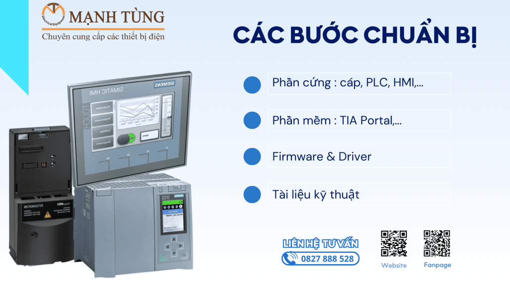 Để quá trình tích hợp PLC S7-1500 với biến tần và HMI diễn ra thuận lợi, bạn cần chuẩn bị đầy đủ cả phần cứng, phần mềm và tài liệu kỹ thuật: