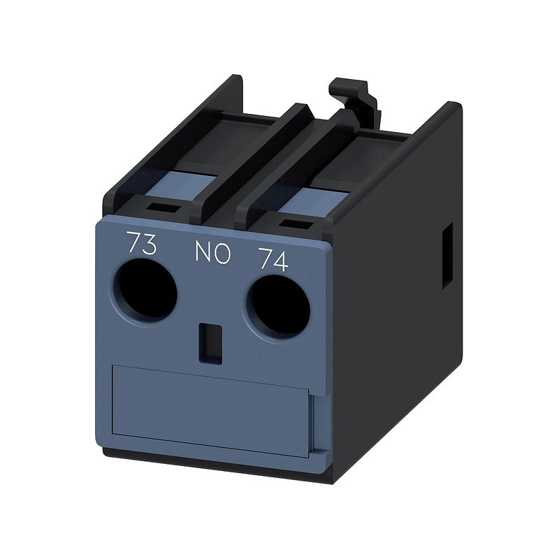 Auxiliary switch on the front, 1 NO Current path 1 NO Connection from below for 3RH and 3RT screw terminal 73/74