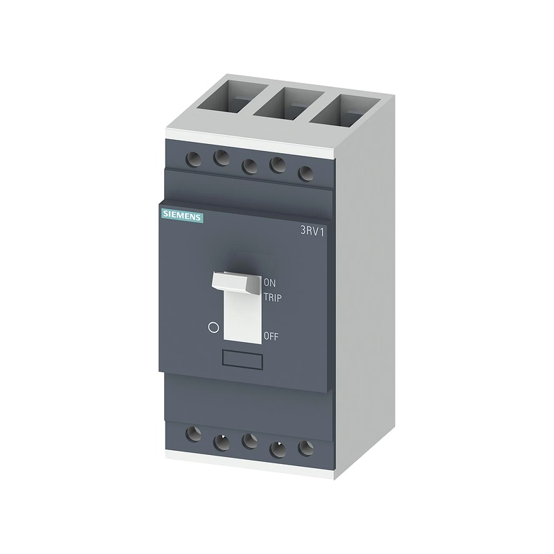 Molded case circuit breaker 3RV1 for motor protection Standard switching capacity Rated current In = 100 A electronic release Short-circuit protection adjustable 6-13 x In Overload protection adjustable 0.4-1 x In, Class 10A-30 Icu = 120 kA at 400 V 3-pole, Screw terminal including phase barriers