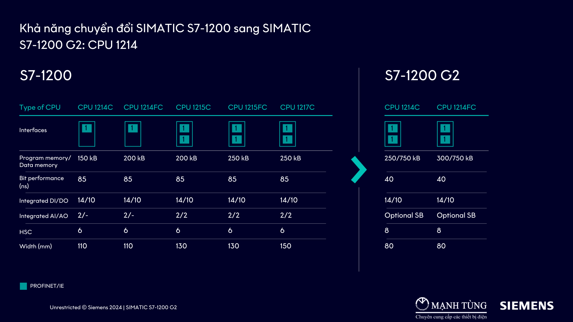 ➡ Mã sản phẩm: 6ES7214-1BH50-0XB0 - PLC S7 1200 G2 CPU 1214C AC/DC/RLY 14x DI 24V DC 10x DQ