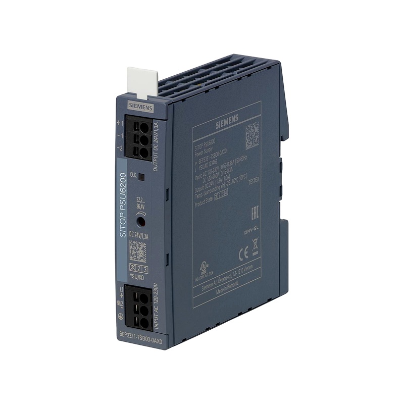 Bộ nguồn Siemens 6EP3332-7SB00-0AX0 24V 2.5A là bộ nguồn công nghệ cao thuộc dòng bộ nguồn SITOP Modular. Thỏa mãn cho tất cả các giải pháp đa dạng và tinh vi. Chúng cung cấp tối đa các chức năng phức tạp và tinh vi. Để sử dụng trong các thiết bị, máy móc, dây chuyền trong các nhà máy, nhà xưởng phức tạp nhất. Dải điện áp cho phép kết nối với hầu hết các hệ thống điện, trực tiếp giữa các dây dẫn của mạng lưới trên toàn thế giới và đảm bảo mức độ an toàn cao ngay cả khi có điện áp dao động lớn. Khả năng chịu đựng quá tải tuyệt vời: Power Boost cung cấp gấp ba lần dòng định mức trong một thời gian ngắn, và với sức mạnh thêm 150%, các nhu cầu có điện năng tiêu thụ cao có thể được kết nối mà không gặp vấn đề. Trong trường hợp quá tải, bạn có thể lựa chọn giữa dòng điện liên tục với khởi động lại tự động hoặc tắt máy. Hiệu suất rất cao giúp tiết kiệm năng lượng và nhiệt lượng phát sinh trong tủ điều khiển là tối thiểu, và vỏ bằng kim loại nhỏ gọn cần ít khoảng trống xung quanh.Ứng dụng