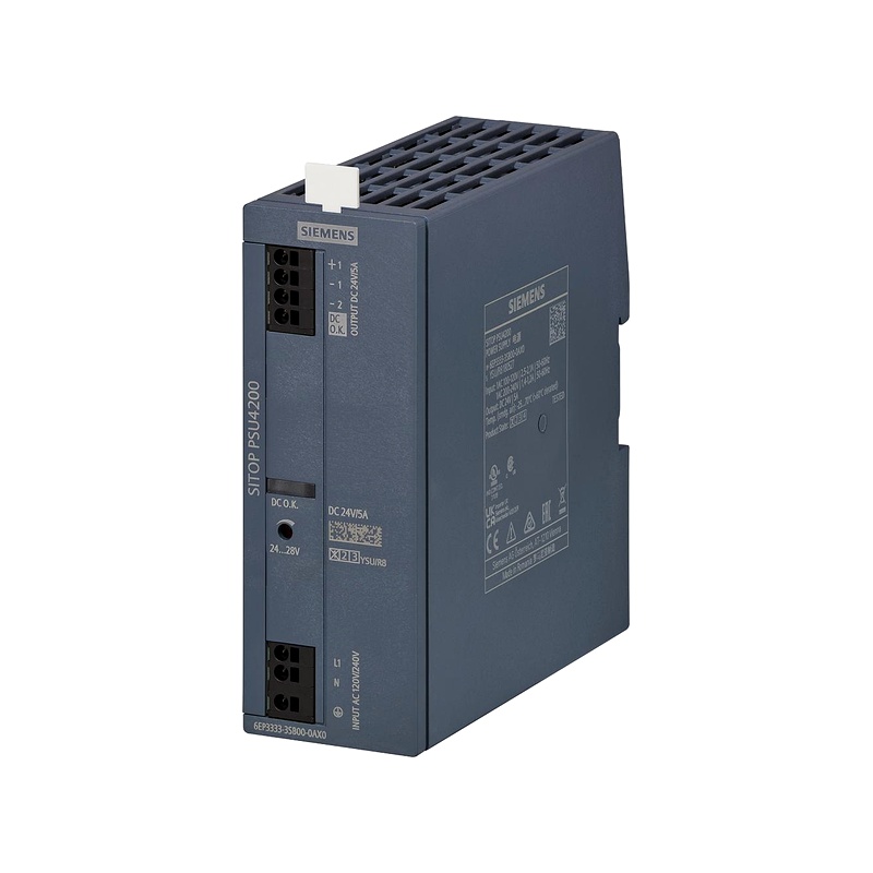 Bộ nguồn Siemens 6EP3333-6SC00-0AY0 1-phase, 24 V DC là bộ nguồn công nghệ cao thuộc dòng bộ nguồn SITOP Modular. Thỏa mãn cho tất cả các giải pháp đa dạng và tinh vi. Chúng cung cấp tối đa các chức năng phức tạp và tinh vi. Để sử dụng trong các thiết bị, máy móc, dây chuyền trong các nhà máy, nhà xưởng phức tạp nhất. Dải điện áp cho phép kết nối với hầu hết các hệ thống điện, trực tiếp giữa các dây dẫn của mạng lưới trên toàn thế giới và đảm bảo mức độ an toàn cao ngay cả khi có điện áp dao động lớn. Khả năng chịu đựng quá tải tuyệt vời: Power Boost cung cấp gấp ba lần dòng định mức trong một thời gian ngắn, và với sức mạnh thêm 150%, các nhu cầu có điện năng tiêu thụ cao có thể được kết nối mà không gặp vấn đề. Trong trường hợp quá tải, bạn có thể lựa chọn giữa dòng điện liên tục với khởi động lại tự động hoặc tắt máy. Hiệu suất rất cao giúp tiết kiệm năng lượng và nhiệt lượng phát sinh trong tủ điều khiển là tối thiểu, và vỏ bằng kim loại nhỏ gọn cần ít khoảng trống xung quanh.Ứng dụng