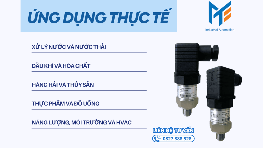 - TITEC PT Series: Cảm biến áp suất chính xác, dải đo 0–25 bar, tín hiệu analog chuẩn, dùng trong nhà máy nước và công nghiệp thực phẩm.
