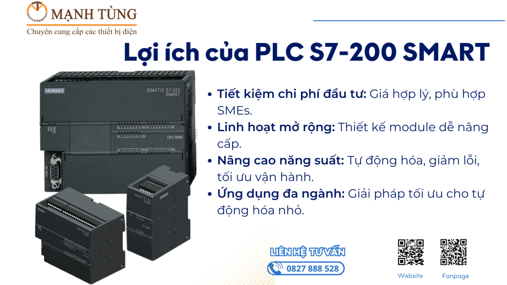 • Giá PLC S7-200 SMART phù hợp với ngân sách của SMEs, giúp các doanh nghiệp nhỏ dễ dàng tiếp cận công nghệ.