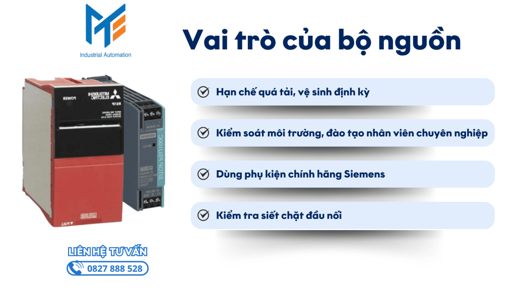 - Nguồn điện ổn định giúp đảm bảo các tín hiệu logic hoạt động chính xác, tránh sai lệch dữ liệu, giảm thiểu lỗi dừng dây chuyền.