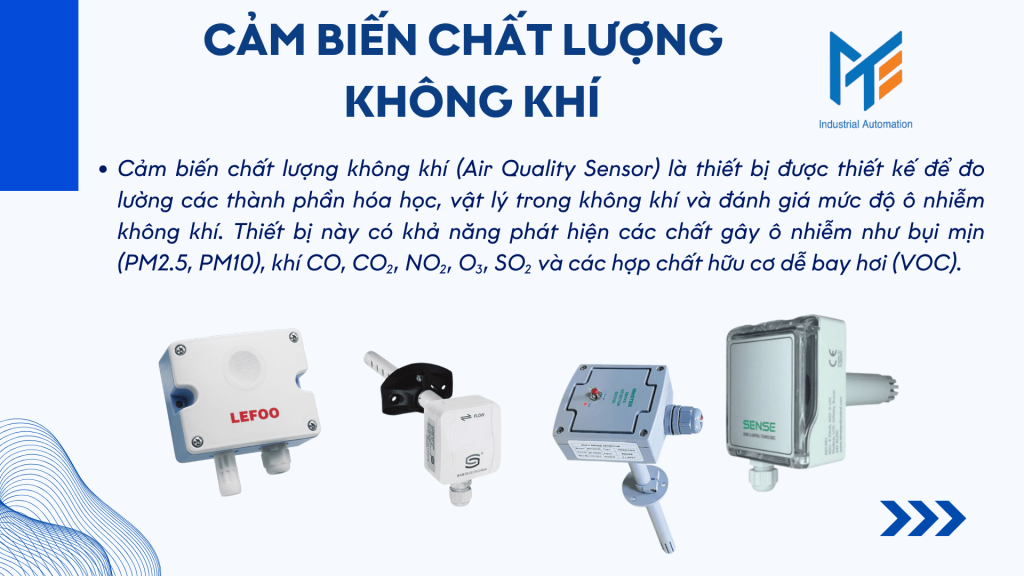 Cảm biến chất lượng không khí (Air Quality Sensor) là thiết bị dùng để đo và phân tích các thành phần trong không khí như bụi mịn (PM2.5, PM10), khí độc (CO, NO₂, SO₂), hợp chất hữu cơ dễ bay hơi (VOCs), hoặc nồng độ CO₂.